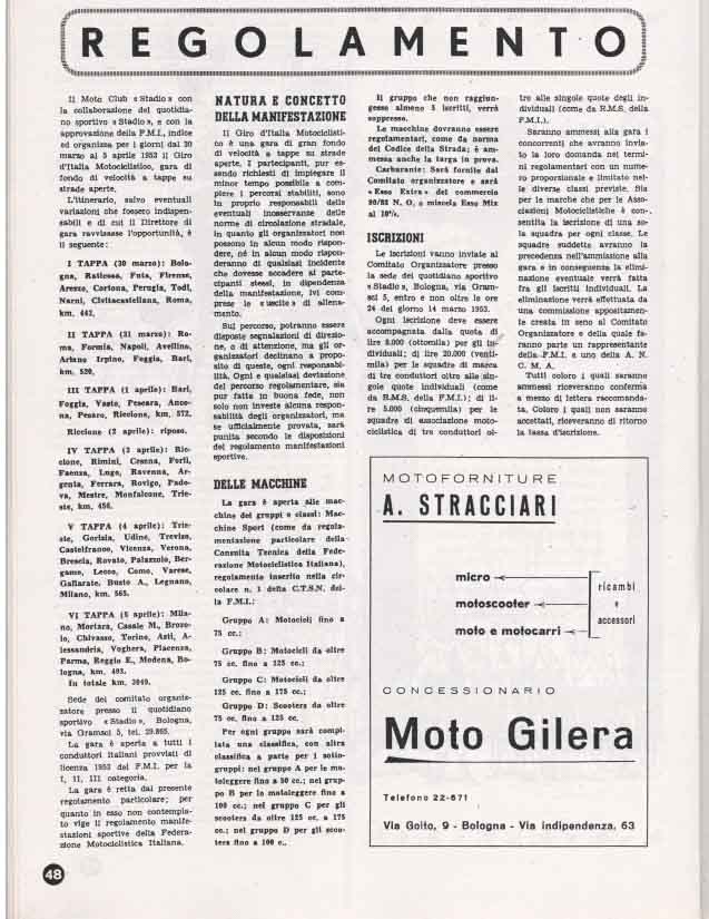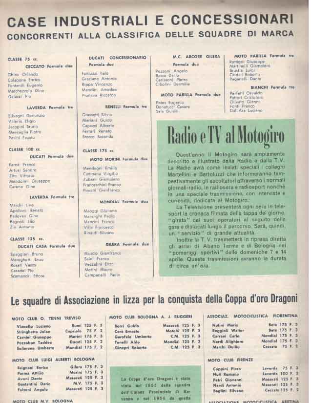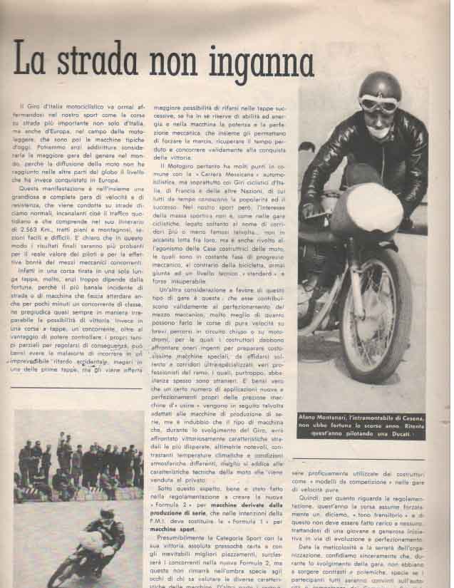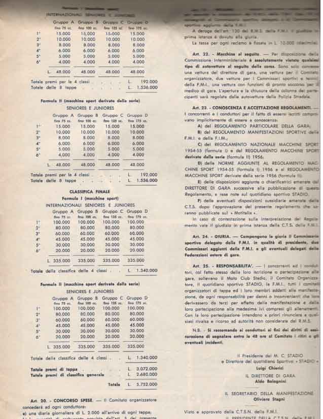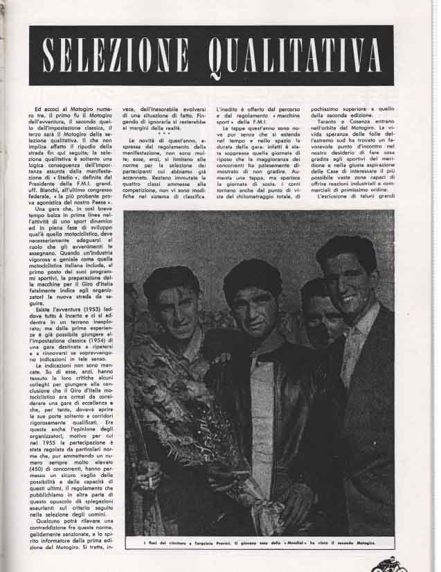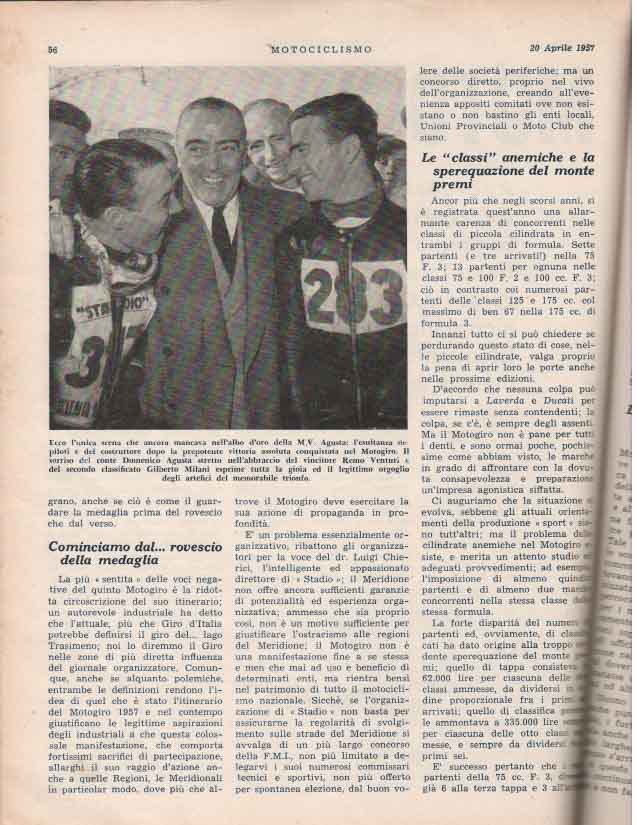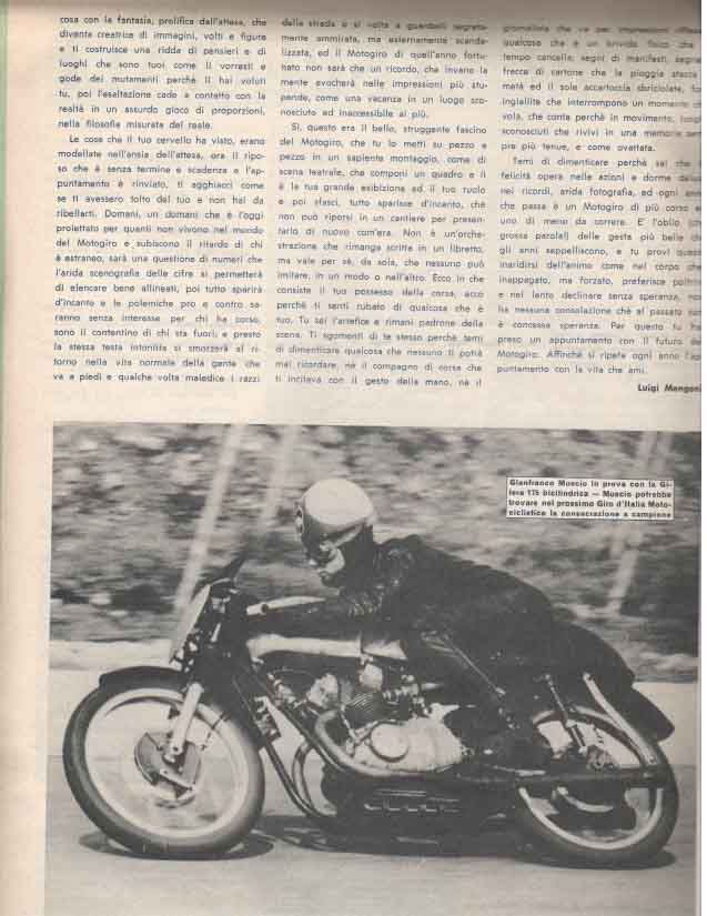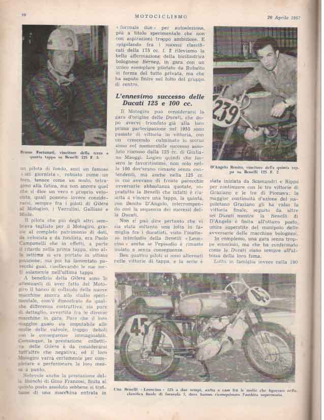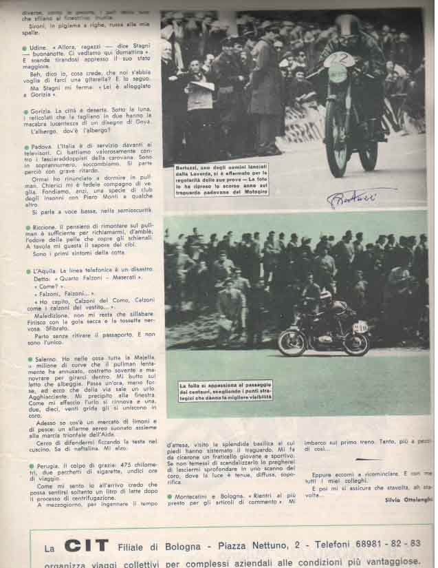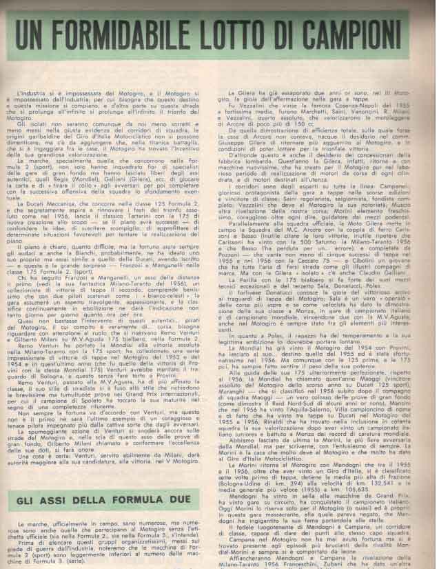Il Motogiro venne corso dal 1953 al 1957, anno in cui le corse su strade cittadine vennero proibite a causa dell’ incidente di De Portago alla Mille Miglia.