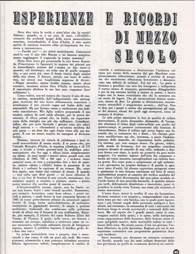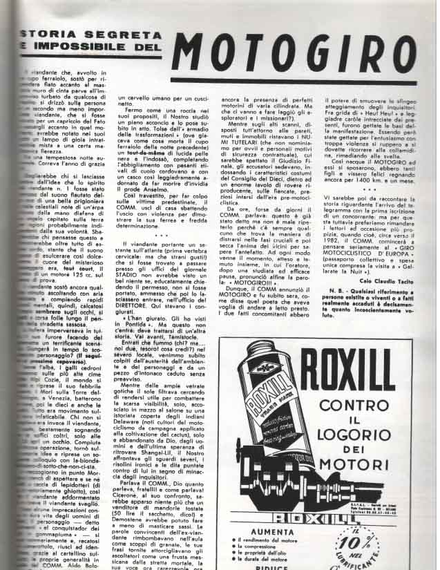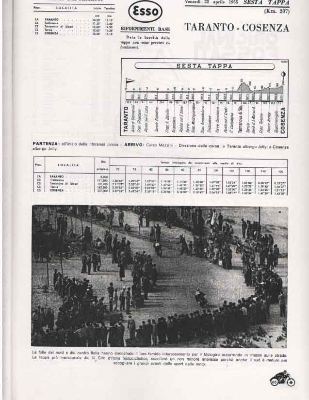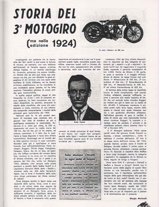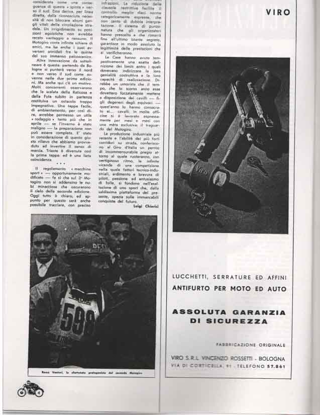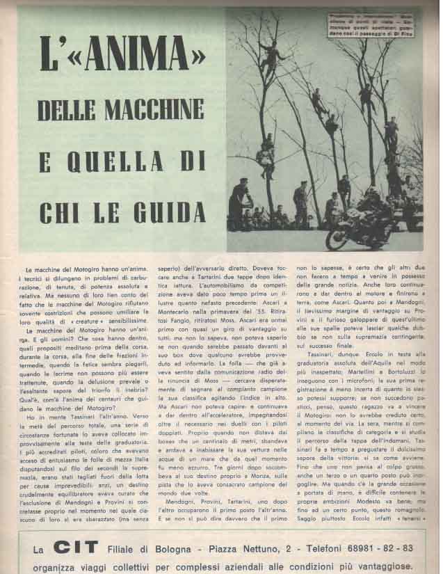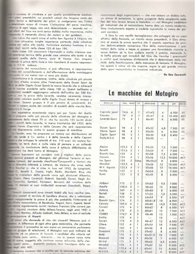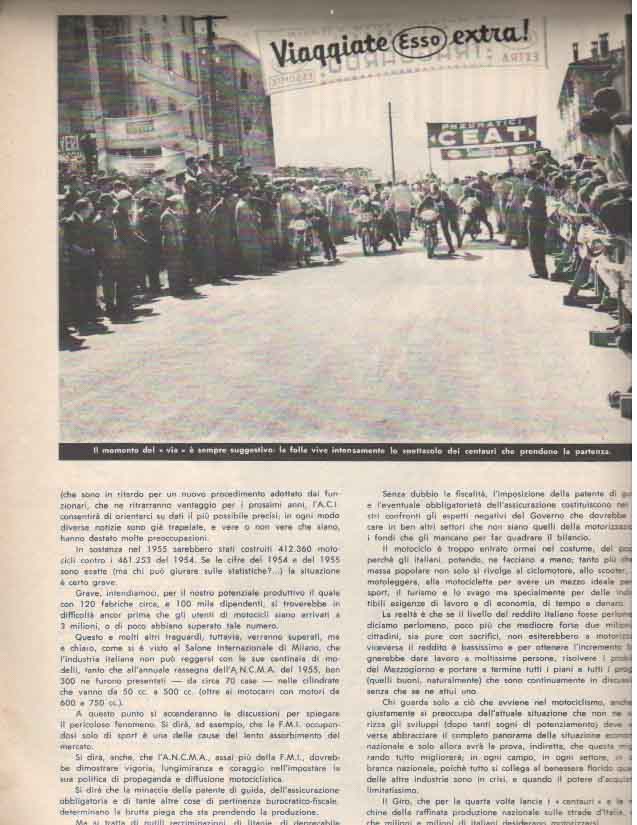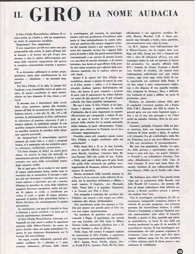 Il Motogiro venne corso dal 1953 al 1957, anno in cui le corse su strade cittadine vennero proibite a causa dell’ incidente di De Portago alla Mille Miglia.