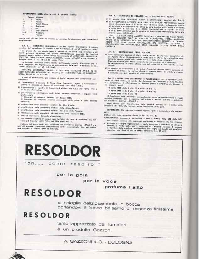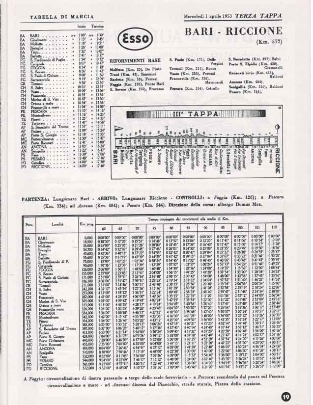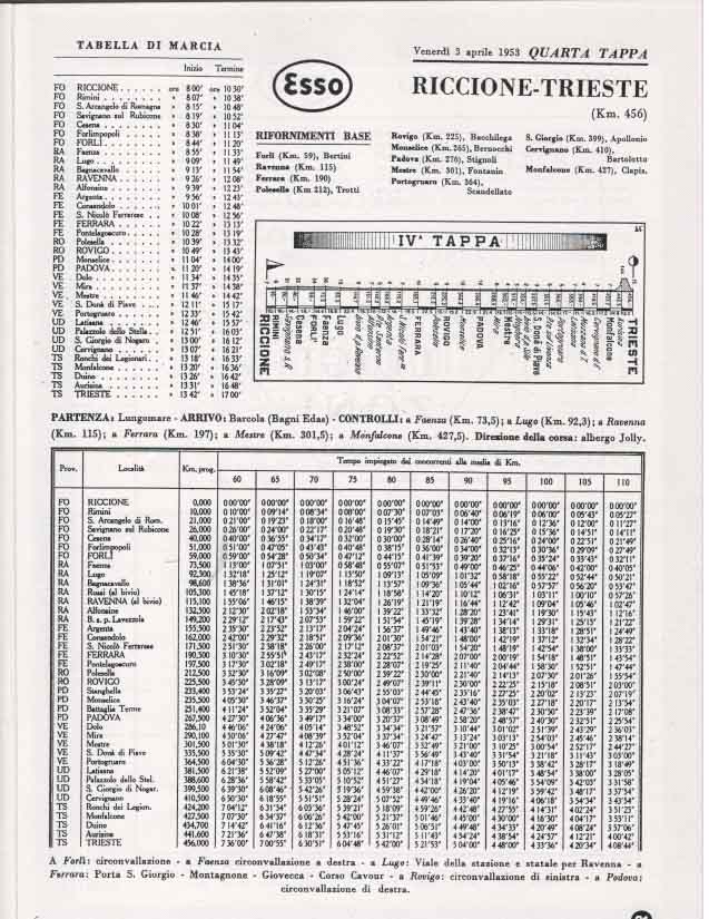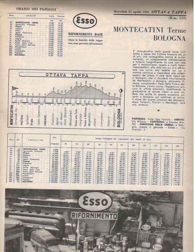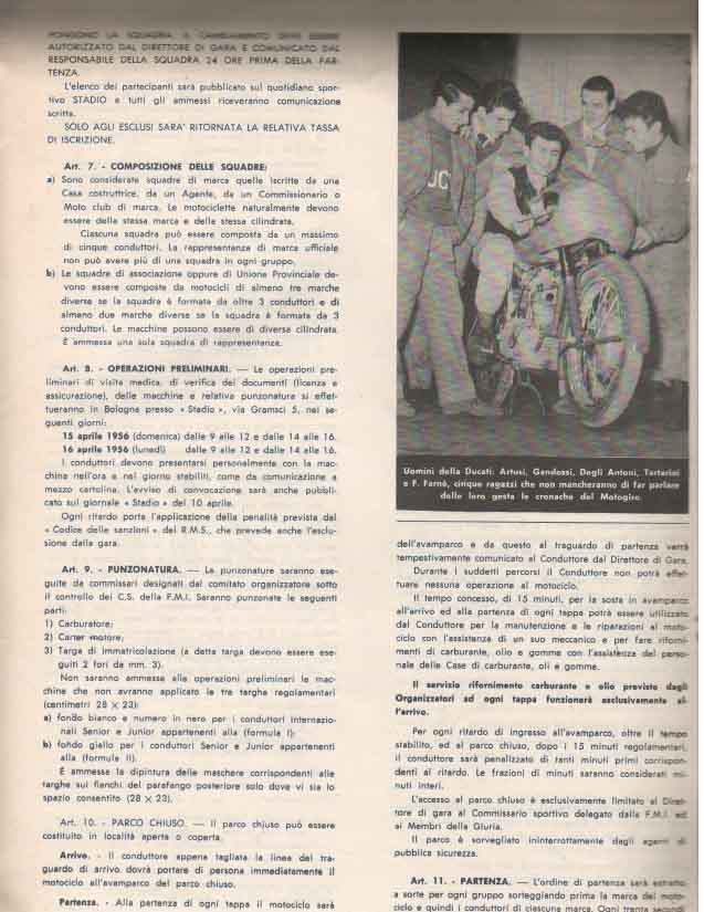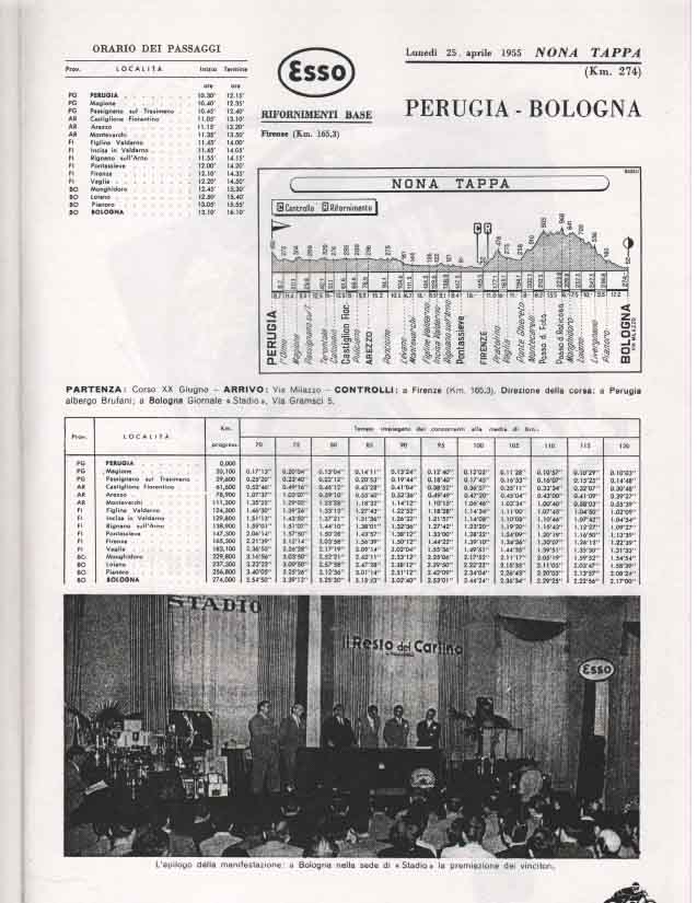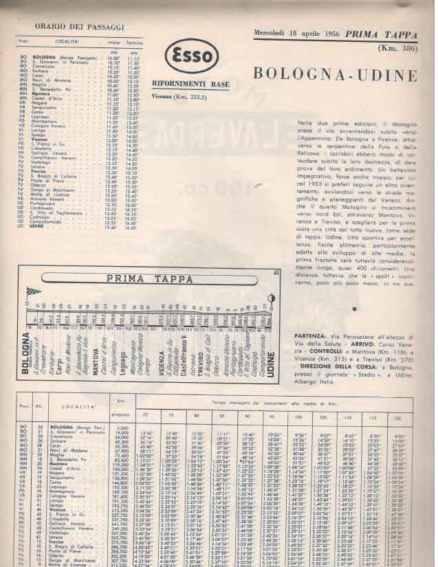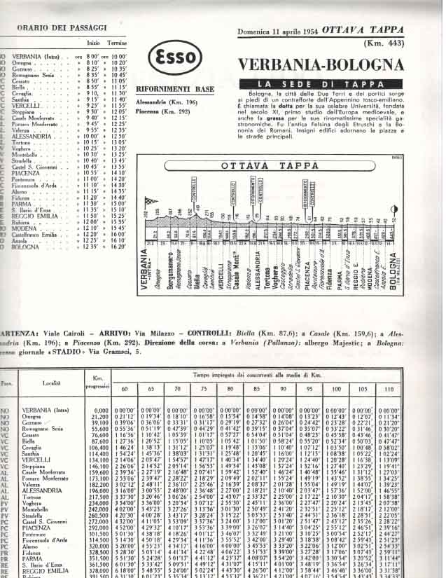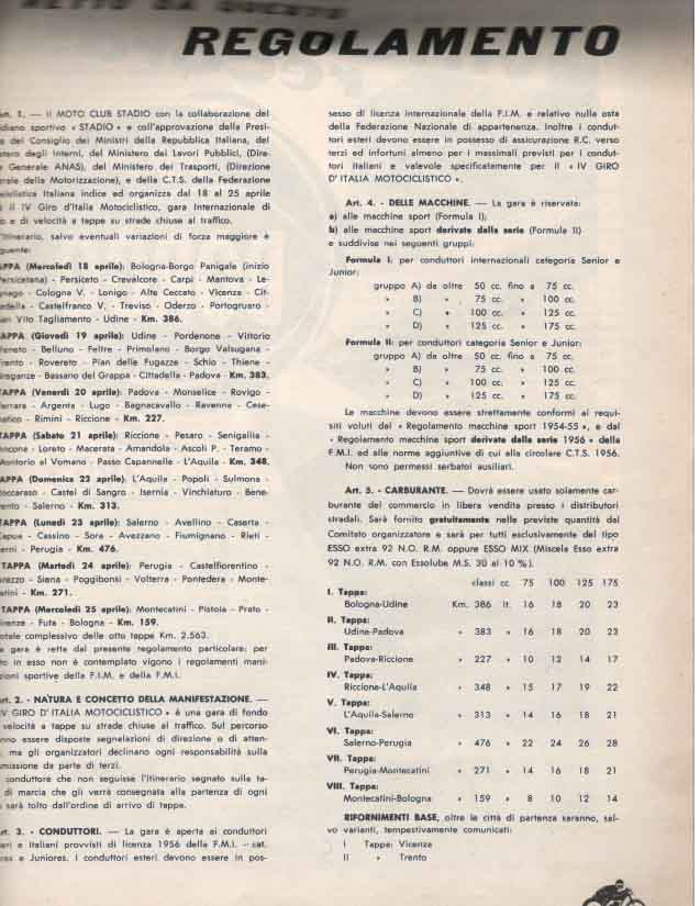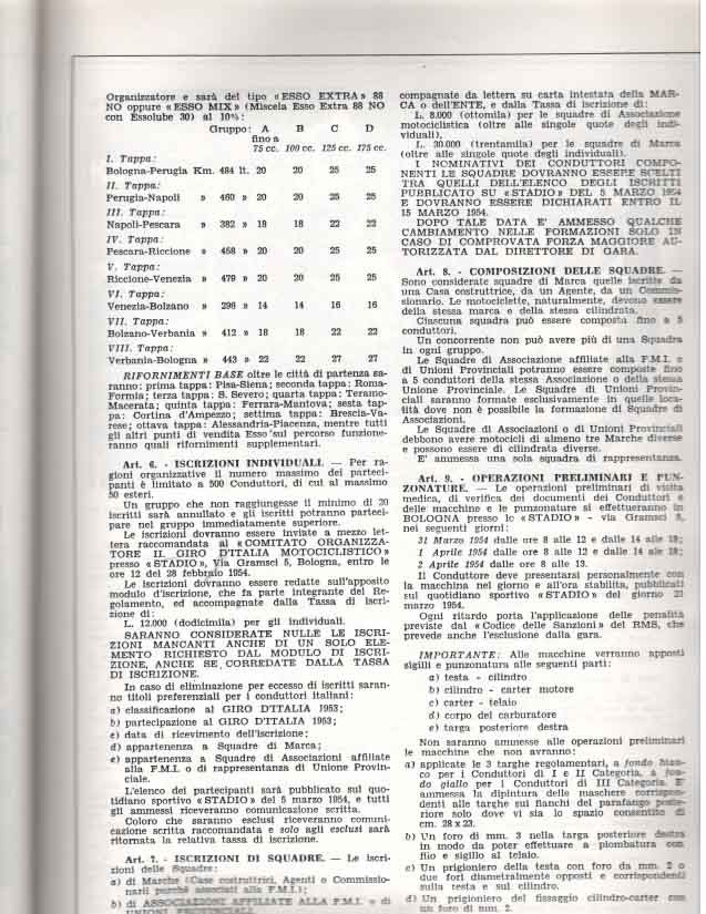 La partenza e l’ arrivo si tenevano a Bologna, e la durata media della gara, divisa a tappe da percorrere in sei giorni, era di circa 3000 km.