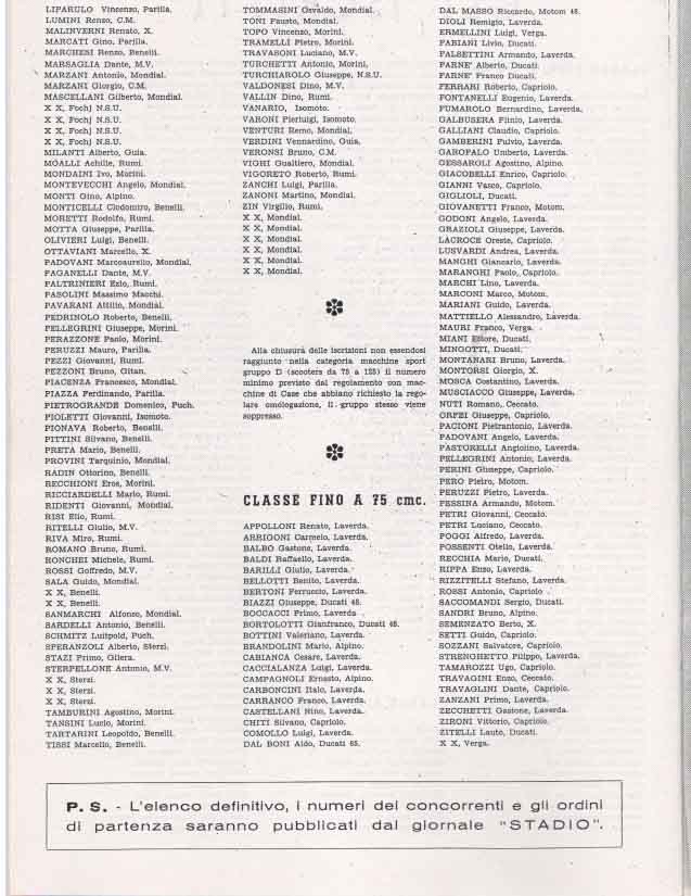 - Classe 75 cm³ : Mariani su Laverda alla media di 82,290 km/h