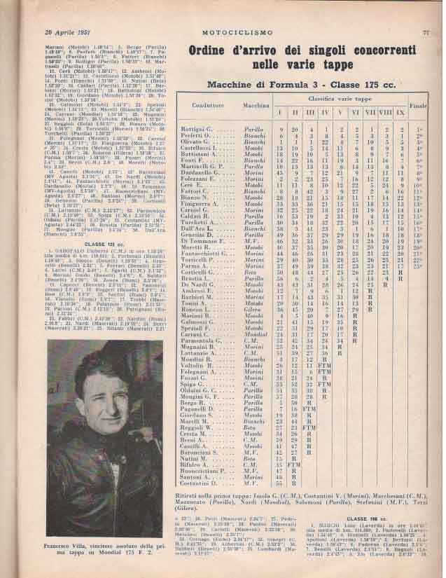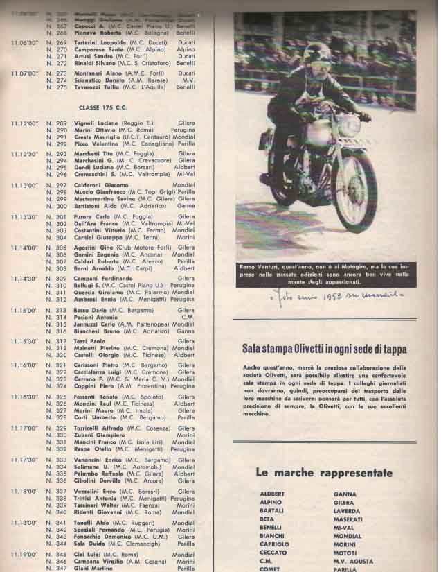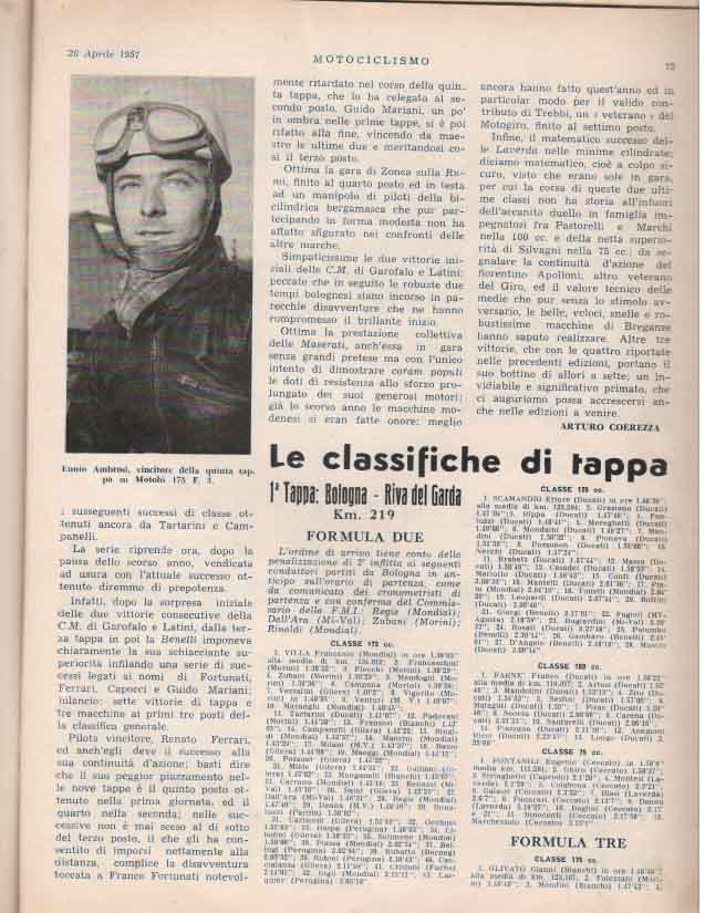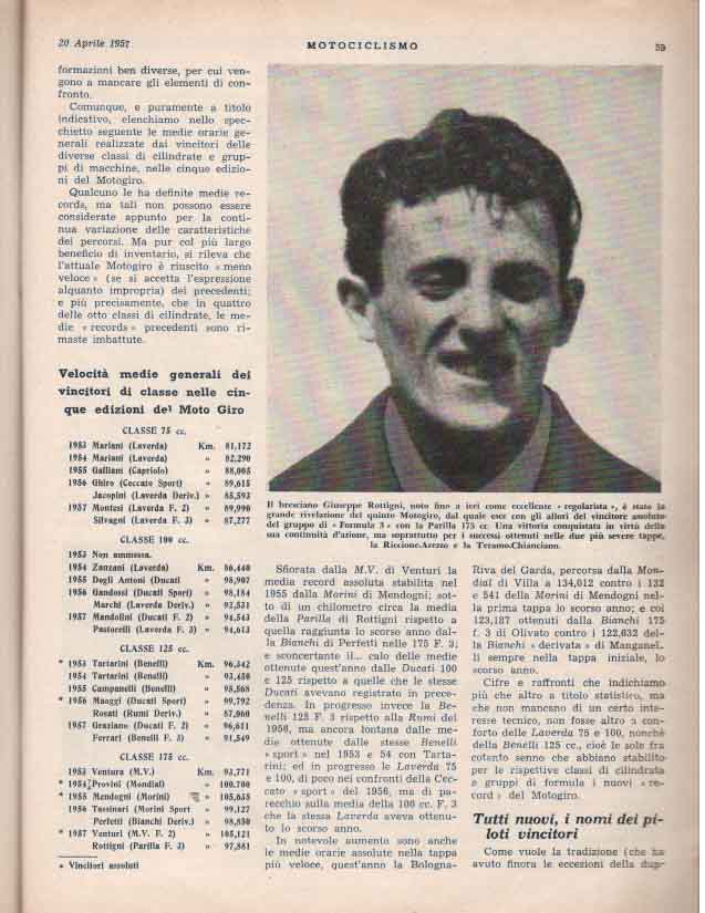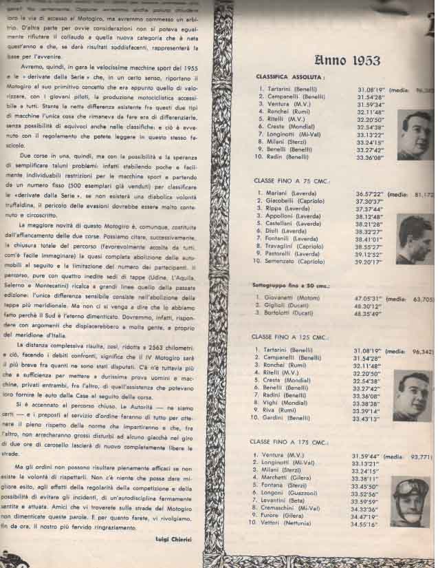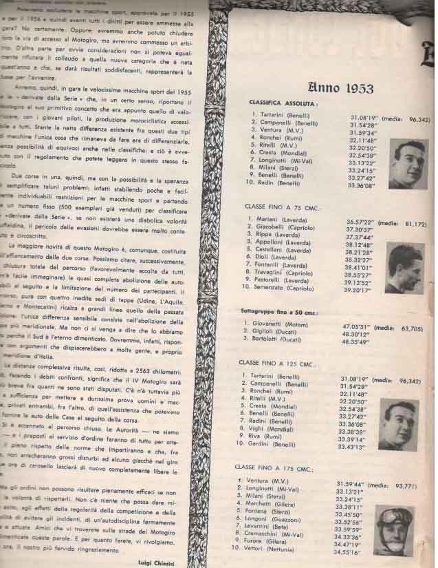 - Classe 175 cm³ : Giuseppe Rottigni su Parilla alla media di 97.881 km/h