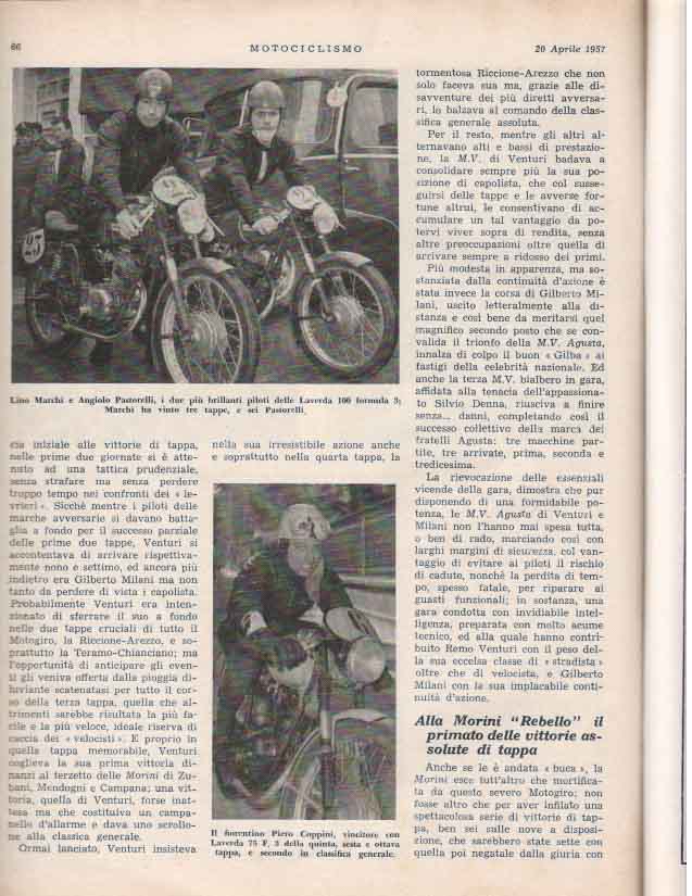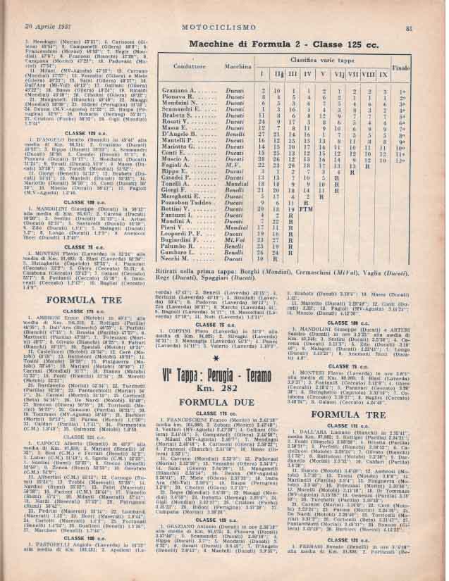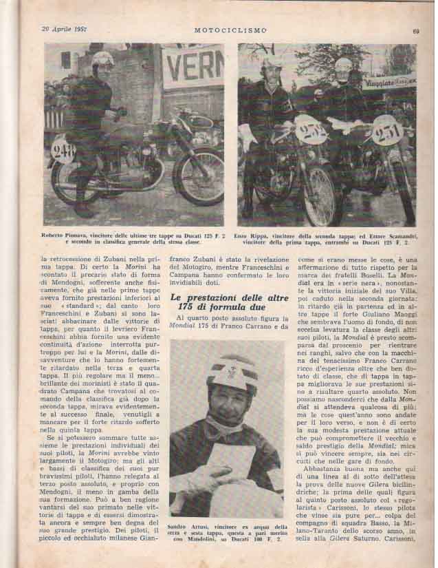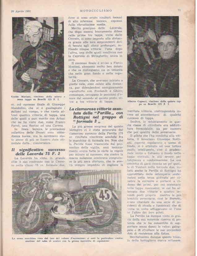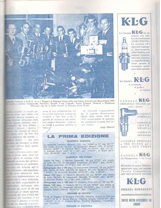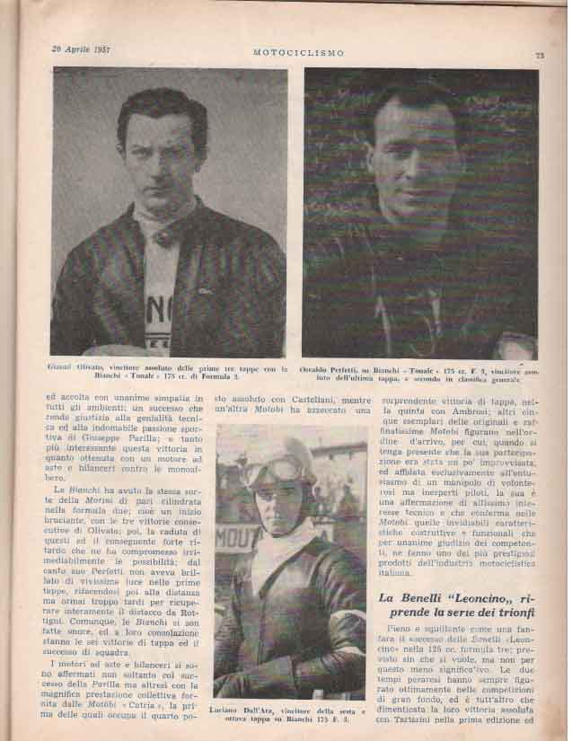 - Classe 175 cm³ : Giuseppe Rottigni su Parilla alla media di 97.881 km/h
