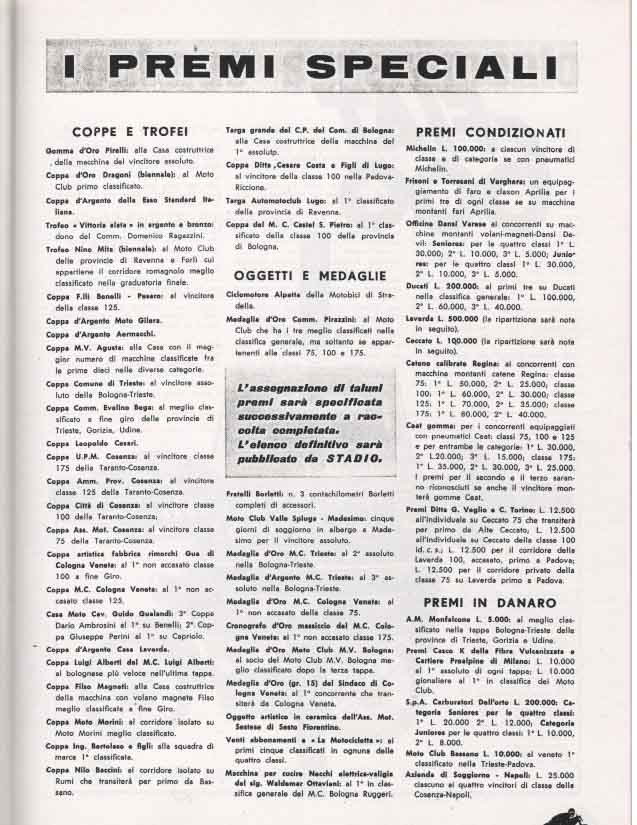 - Classe 75 cm³ : Silvagni su Laverda alla media di 87,277 km/h