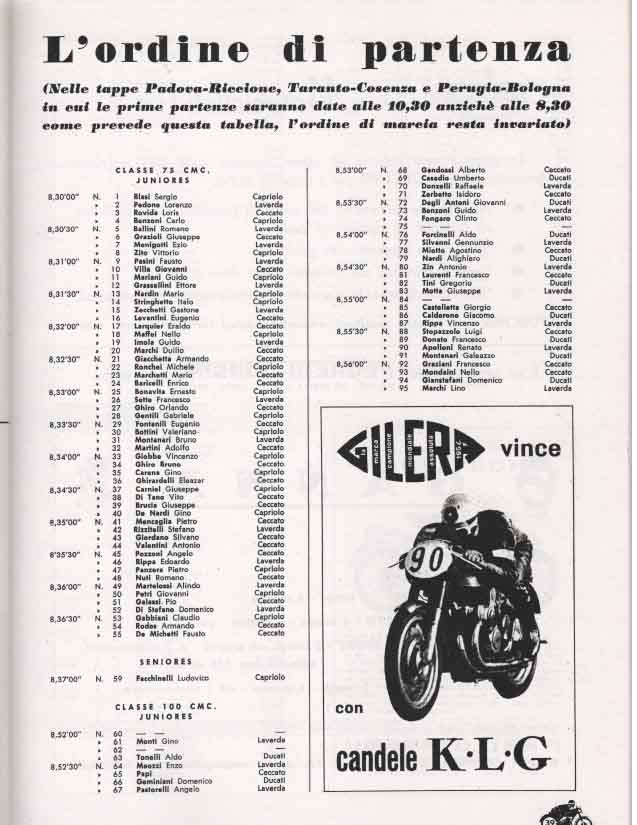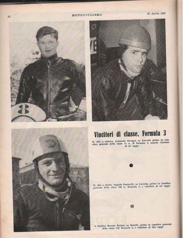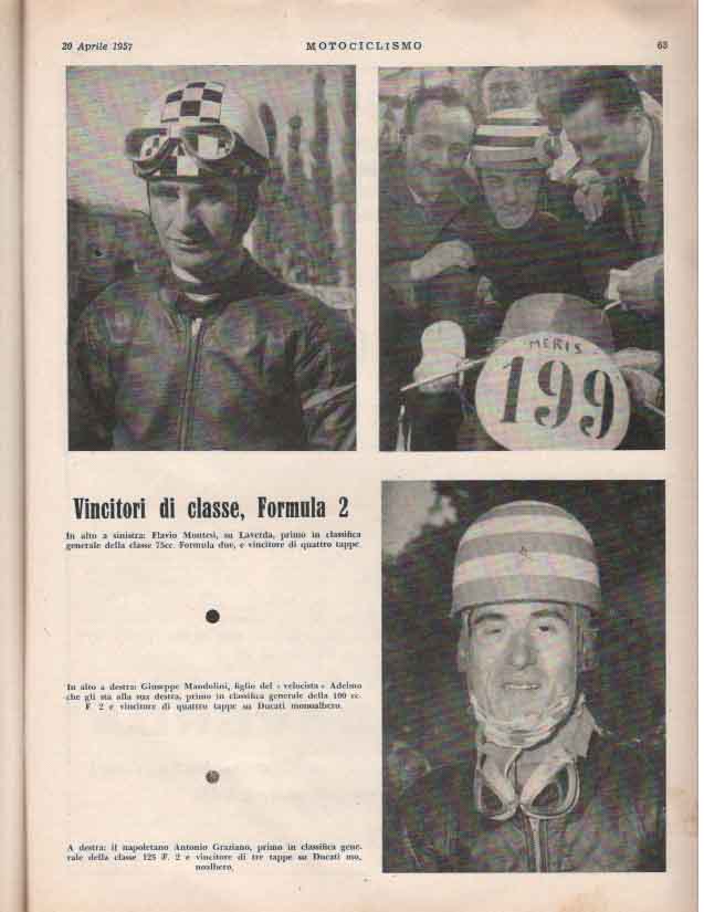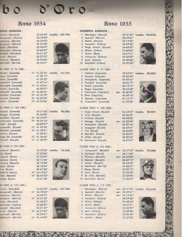 - Classe 100 cm³: Degli Antoni su Ducati alla media di 98,907 km/h