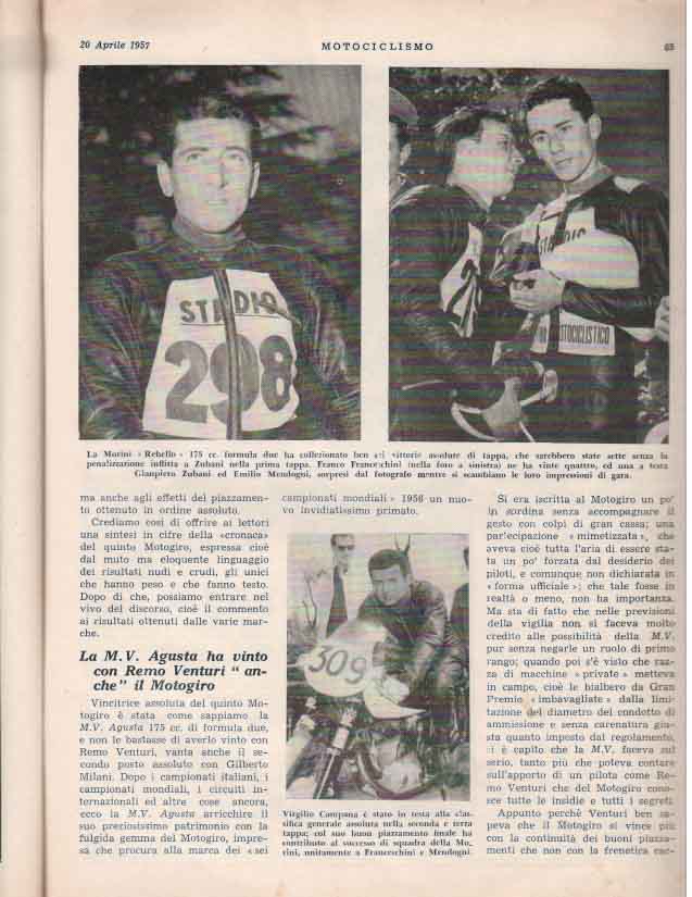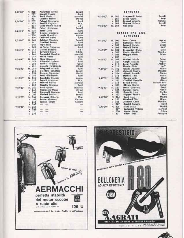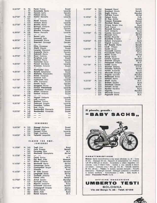 - Classe 175 cm³: Mendogni su Moto Morini alla media di 105,635 km/h